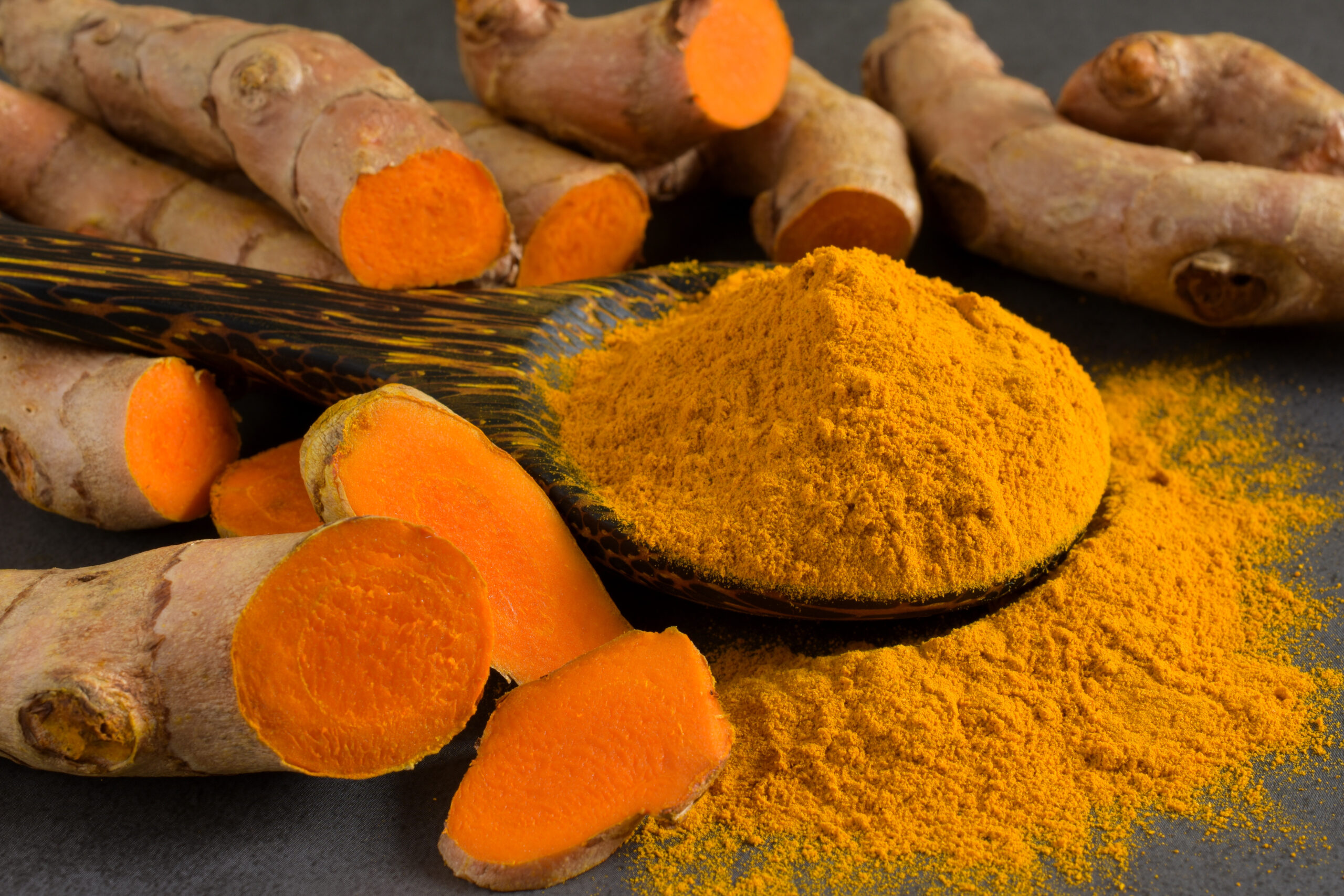 Turmeric is a member of the ginger family. It is a rhizomatous clumping perennial to about 1 m tall with green, lightly aromatic, sheathing leaves. The pale yellow to orange flowers are borne in dense spikes. The rhizome is used as a spice. It is slender and branched, with a bright orange flesh that has a spicy, earthy flavour. Turmeric is also used as a food colouring, giving a golden colour to rice and other dishes. In cooking, use a 2.5 cm piece of freshly harvested turmeric rhizome for every 1?2 teaspoon of the dried spice recommended in the recipe. Peel the rhizome, cut it into pieces and process with a little water in a blender.